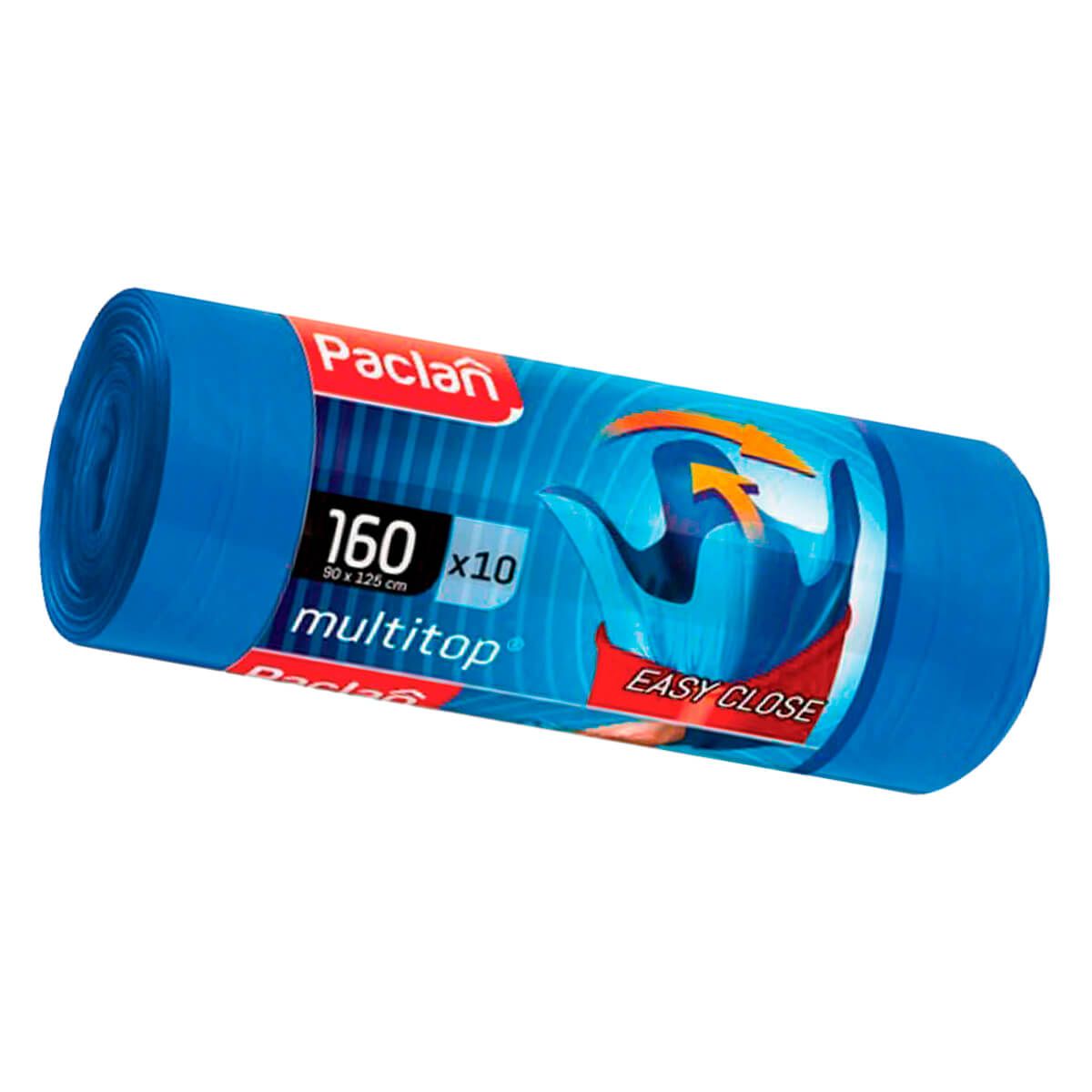 Мешки для мусора 160 л, с ушками, синие, в рулоне 10 шт., ПВД, 30 мкм, 1250х900 мм, PACLAN Multitop, 604064