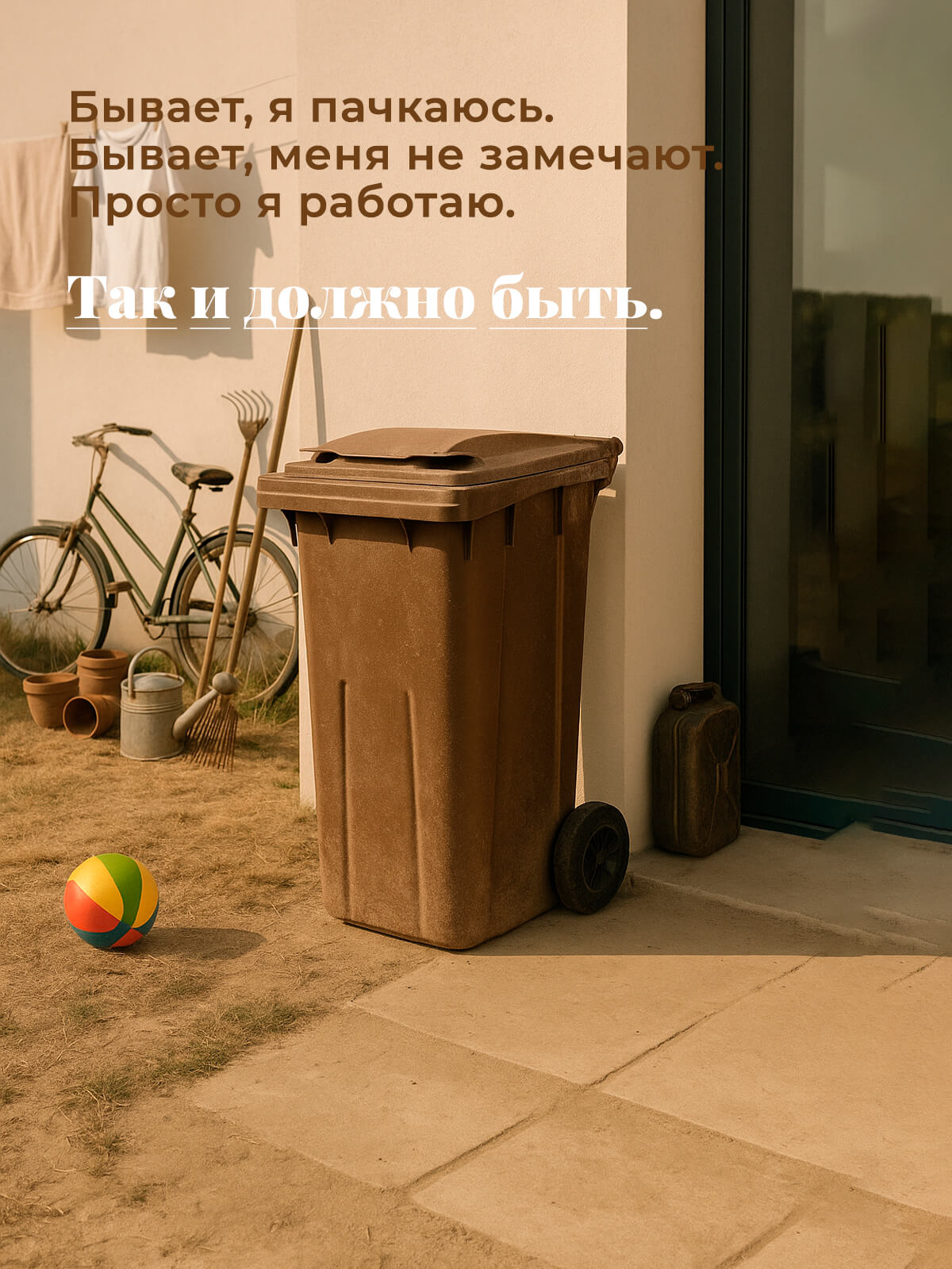 Контейнер для мусора 120 л на колёсах с крышкой, коричневый — надёжное решение для поддержания чистоты на улице и территории
